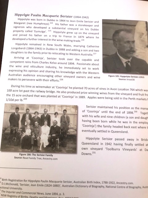 Reaching out to the owners of Coorinja Winery, Michael Wood kindly fished out an old family tree a descendant had dropped off some years ago and also said a descendant of Hipployte’s brother, (probably Frederick), lives in Toodyay, and has been running a French cafe and garden centre with his wife, at the old Guildford post office.