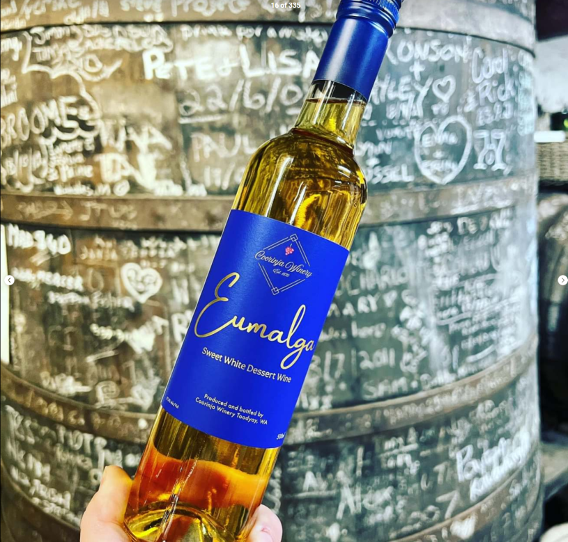 Google Maps confirmed it, and Coorinja Winery’s social media includes a post with a photo of the Eumalga Sweet Dessert Wine, with the comment: